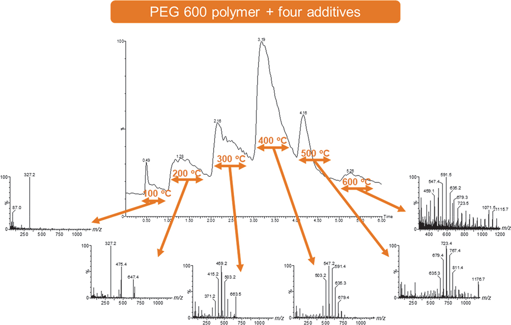 尽快与弧度,分析科学家或配方工程师可以更容易观察的先进材料和应用组件热梯度温度斜坡分离组件基于他们不同的沸点。在图1和图2,聚合物材料和加工添加剂很容易确定使用这个approach-speeding制定设计决策过程。