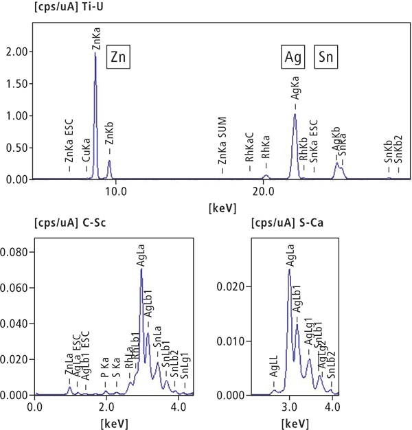 使用ED-XRF光谱仪(Shimadzu EDX-8000)和AIM-9000红外显微镜连接IRAffinity-1S FT-IR分光光度计(Shimadzu)进行分析。与原子吸收光谱(AAS)、电感耦合等离子体光学发射光谱(ICP-OES)或电感耦合等离子体质谱(ICP-半岛综合体育官方APP下载德甲MS)等方法相比,这两种测量技术都能在原始状态下检测样品的无破坏。对于较大的样品,可能需要使用较小的样品以使其适合测量仪器或附件。如果需要,可以用其他分析仪器进行进一步的测试,以确定样品的其他细节。