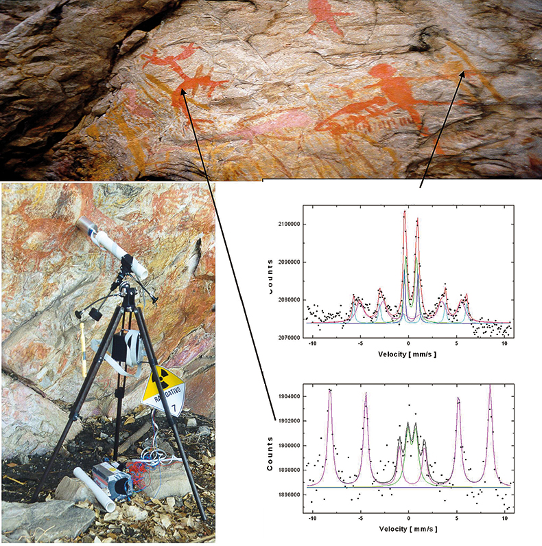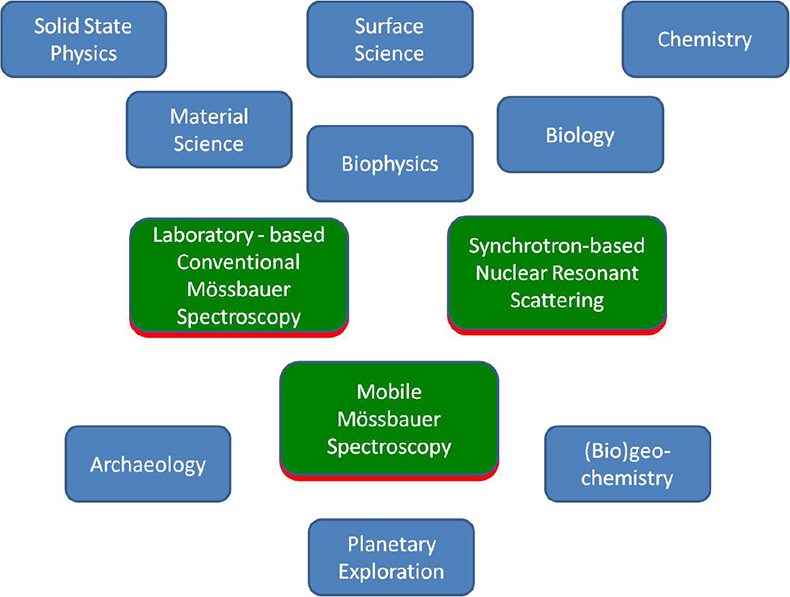一个 50多年前,德国物理学家鲁道夫·l·穆斯堡尔同时工作在他的博士论文在慕尼黑技术大学Maier-Leibnitz教授和海德堡大研究所发现的 图1所示。穆斯堡尔谱学的应用和影响的概述。半岛综合体育官方APP下载德甲 穆斯堡尔谱学研究已成半岛综合体育官方APP下载德甲为一个优雅的工具的电子结构、成键性质,分子对称性,磁行为和固态相变,形成识别各种材料的基础。穆斯堡尔谱学允许非破半岛综合体育官方APP下载德甲坏性分析阶段,这通常是采用常规“指纹”的方法。即使物质 穆斯堡尔谱的适用性不仅极大地传播的描述材料在最广泛的意义上,从基础研究到实际工业应用,显半岛综合体育官方APP下载德甲著进步也发生在仪器和方法。例如,最壮观的小型化实验室光谱仪的比例下降的一个因素 许多课本和评论文章原则,实验方面和穆斯堡尔谱学的应用出现。半岛综合体育官方APP下载德甲我们指的是只有少数人,在我们看来,似乎值得推荐的进一步详细阅读和学习关于这个光谱技术。<年代up>6 - 8 穆斯堡尔效应已经检测到72年共有近90γ-ray转换42个不同元素的同位素。图2显示了元素周期表的Mossbauer-active元素标记。由于若干标准(合适的核激发态的寿命,转变能源、简单的可访问性和处理) 图2。元素周期表;那些穆斯堡尔效应被观察到适当的标记。(从1974年版的复制参考9许可)。 穆斯堡尔效应 共振吸收是可观察到的只有在发射和吸收谱线重叠足够。通过发射或吸收γ-quanta与能量 三种超精细相互作用可能观察到的穆斯堡尔谱: 1。 2。 3所示。 电单极(库仑) 图3。异构体转变的范围值预期不同的氧化和自旋态的铁的化合物(从参考17许可复制)。 电四极 图4。四极分裂的激发态<年代up>57 图5。<年代up>57 磁偶极子 图6。磁偶极子分裂(核塞曼效应)<年代up>57 穆斯堡尔谱学已发展成半岛综合体育官方APP下载德甲为一个优雅和固态通用分析工具研究。在常规分析它可以给一个快速回答价态(氧化态,自旋状态),当地的对称或磁性的穆斯堡尔原子中包含感兴趣的材料。也证明了宝贵的学习各种相变,即使在这种情况下,材料不包含一个Mossbauer-active核素成分可以掺杂浓度很小。通常,穆斯堡尔谱学是唯一的特别调查半岛综合体育官方APP下载德甲和信息技术。而传统的穆斯堡尔谱学,经常使用“指纹法”,已牢固确立在固态研究半岛综合体育官方APP下载德甲领域的其他技术等先进的仪器发展实验室光谱仪的微型化和同步加速器辐射的使用而不是放射性核素的来源开辟了新的途径,并为特殊问题的研究提供手段。选定的例子使用各种方面的穆斯堡尔谱学将在下面描述。半岛综合体育官方APP下载德甲 研究热,光致旋转状态切换铁化合物。 图7。(一)穆斯堡尔谱(Fe(苯酚的)<年代ub>3 这种自旋状态转换也可能通过辐照光。<年代up>11 趋磁细菌的研究。 图8。(一)六角,cubic-shaped菲<年代ub>3 iron-sulfur集群在药理相关铁蛋白的识别。 图9。LytB (IspH)催化作用的最后一步methylerythritol磷酸途径。穆斯堡尔谱表明,su半岛综合体育官方APP下载德甲bstrate-free [4 fe-4s]第四铁网站集群有一个独特的和典型的参数对四面体地协调高自旋亚铁铁(a)。获得的穆斯堡尔谱的变化模式后基质添加(b)显示,基质是协调的独特LytB第四铁网站。<年代up>16 腐蚀研究。 图10。<年代up>57 这种穆斯堡尔效应研究进行常规解决工业腐蚀问题。例如,图11显示了穆斯堡尔谱精细分散粒子的形成在核电站的冷却系统。光谱的谱是一个叠加的五种不同的含铁物种浓度给定的表中。 图11。常规穆斯堡尔分析精细分散腐蚀粒子形成于核电站的冷却系统(从参考17许可复制)。 努力使小型化穆斯堡尔仪表,由埃格伯特Kankeleit Gostar Klingelhofer在美因茨,在达姆施塔特,继续被利用穆斯堡尔谱学的欲望驱动的探索火星。半岛综合体育官方APP下载德甲太空任务约束有限的质量、体积和力量导致了小型穆斯堡尔光谱仪米姆二世<年代up>4,18 图12。小型的sensorhead穆斯堡尔光谱仪,米姆二世,包含驱动装置、穆斯鲍尔源和探测器和放大电子(改编与许可参考8)。 火星探索。 图13。艺术家的印象的雅典娜载荷两个NASA火星探测车,精神和机会。插图是一个机械手臂上的仪器获得的形象与精神的车上全景在287年索尔的使命:α粒子的x射线谱仪(指着左边)的穆斯堡尔谱仪(下降),岩石磨损的工具(右)和显微成像仪(了)。索尔是火星上的一天,略超过24 h。两个全景照相机(车上全景)“眼睛”上的桅杆的高度约1.5米。图片提供:美国宇航局/喷气推进实验室/康奈尔。 “机会号”火星探测器降落在子午平原遇到分层,高硫沉积的岩石。虽然有形态学证据甚至池表面水一次,最好的水渗透这些岩石矿物学证据在过去的穆斯堡尔谱鉴定硫酸铁氧化矿物黄钾铁矾。半岛综合体育官方APP下载德甲<年代up>23 “勇气号”火星探测器降落在古谢夫陨石坑在地球的对面。火山口的地板是由熔岩流只显示非常有限的水改变的迹象。<年代up>25 地质调查工作。 艺术和考古文物。 图14。非破坏性分析分布式天线附近的古代岩画贝洛奥里藏特,米纳斯吉拉斯,巴西。天线安装在三脚架上,指着不同颜色的调查。记录从一个红色区域所示的光谱和赭石。 穆斯堡尔谱学与同步辐半岛综合体育官方APP下载德甲射在传统技术优势,因为可以方便地同步加速器束集中。高亮度和极其平行光束从而使